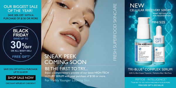 The Body Deli's superfood skincare system is a breakthrough in skin rejuvenation technology. Clinically tested actives are combined with fresh organic, living botanical superfoods that synergistically provided unparalleled cellular regenerative results.